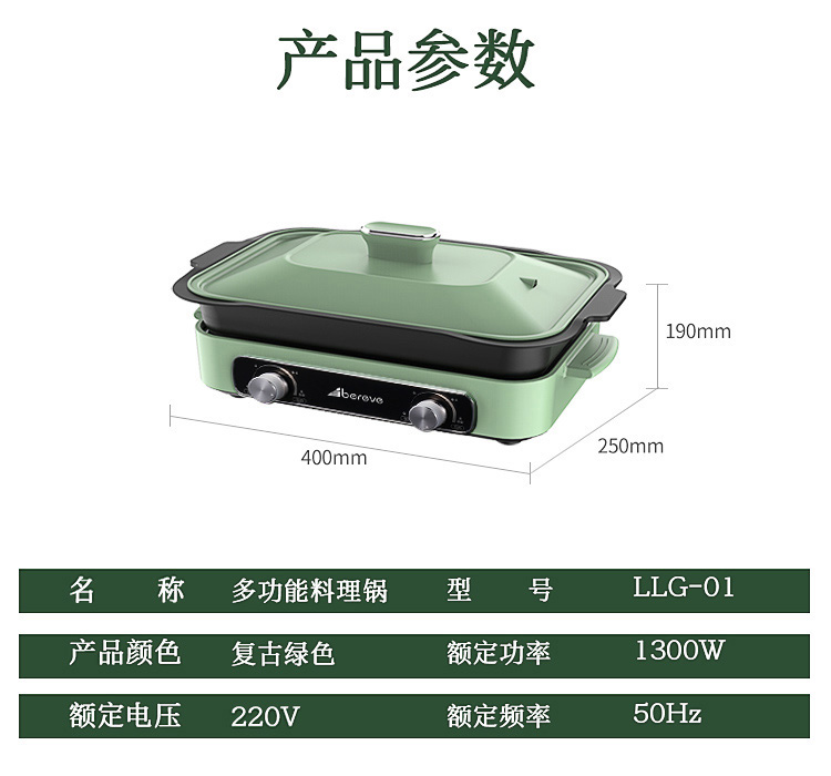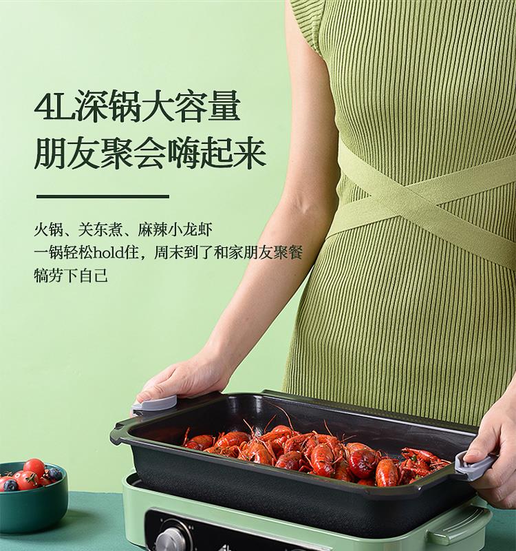 品牌: 艾贝丽 商品名称:艾贝丽多功能料理锅多用涮火锅烧烤一体锅家用韩式烤肉机LLG-01商品编号:10032359023912店铺: 艾贝丽电器官方旗舰店商品毛重:5.0kg操控方式:机械式容量:2.1-4L类型:烤涮一体锅