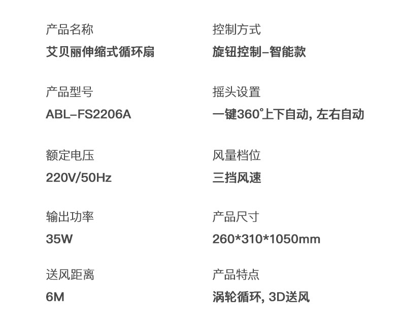 艾贝丽360度空气循环扇ABL-FS2206A