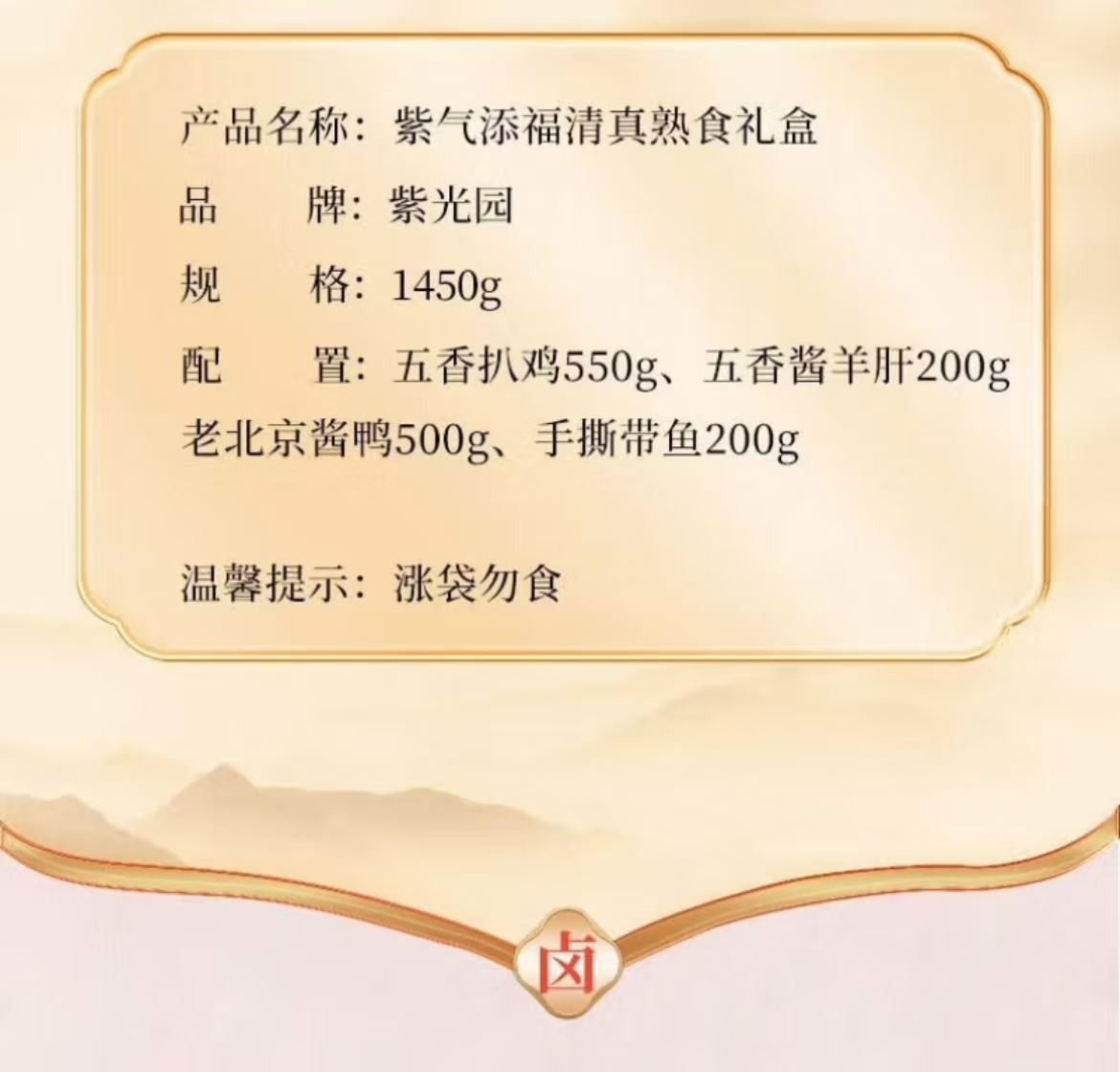优溢嘴麻酱鸡蛋+中粮团圆大礼包+紫光园清真熟食+杞果小圣枸杞