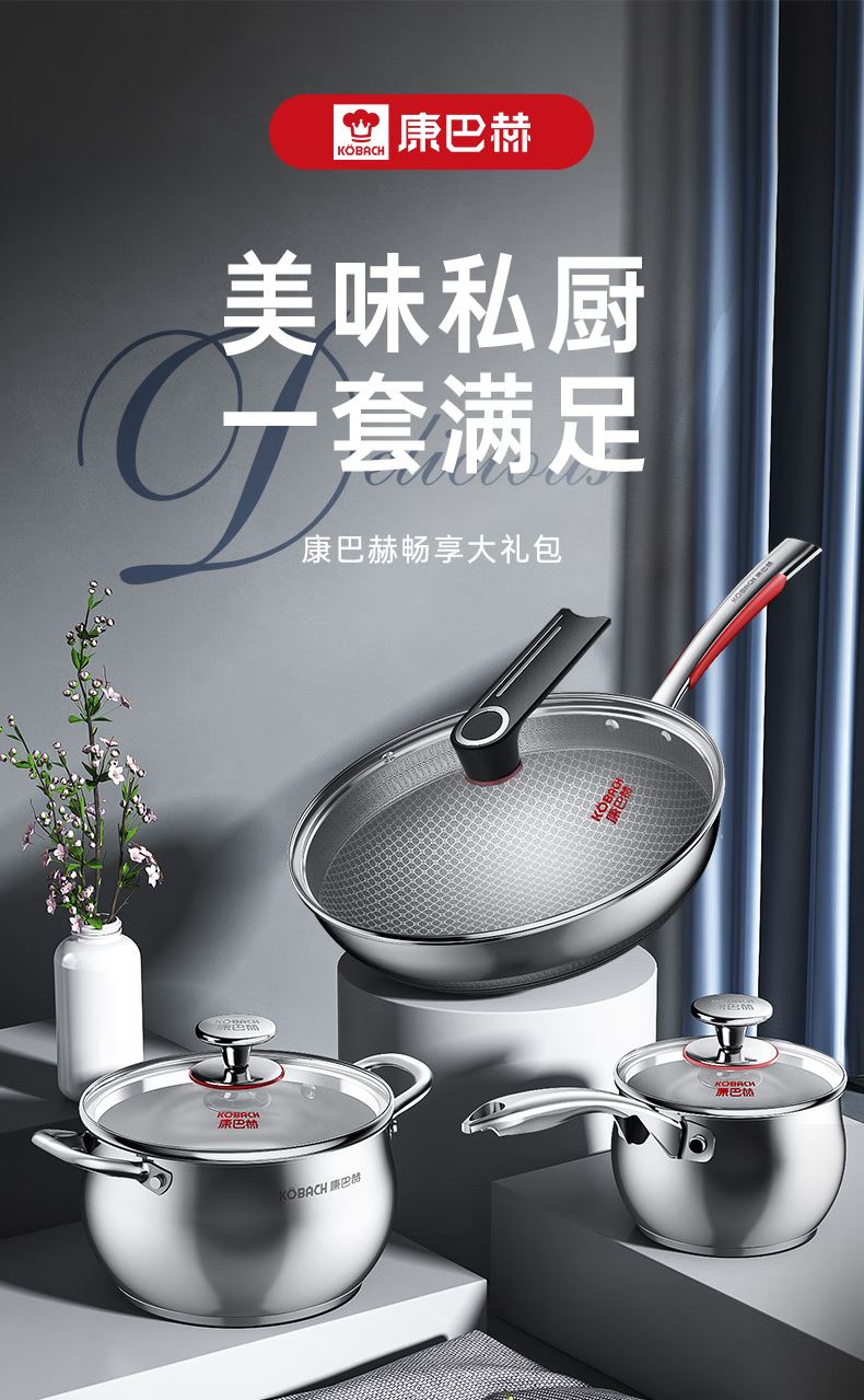 H康巴赫锅具三件套+餐具套装+花茶壶套装+砂锅