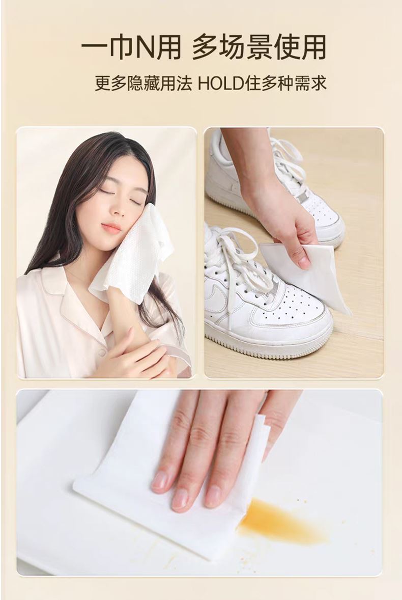 规格:20*20cm 面料:粘胶纤维 含量:160片/包 箱:20包/箱 1.优选材质:产品材质甄选优质天然的植物纤维(再生纤维素纤维) ,天然植物萃取,亲肤舒爽; 2.整款产品干湿两用,温和亲肤,AB双面天然植物纤维,无任何添加有害成分,呵护您的肌肤.